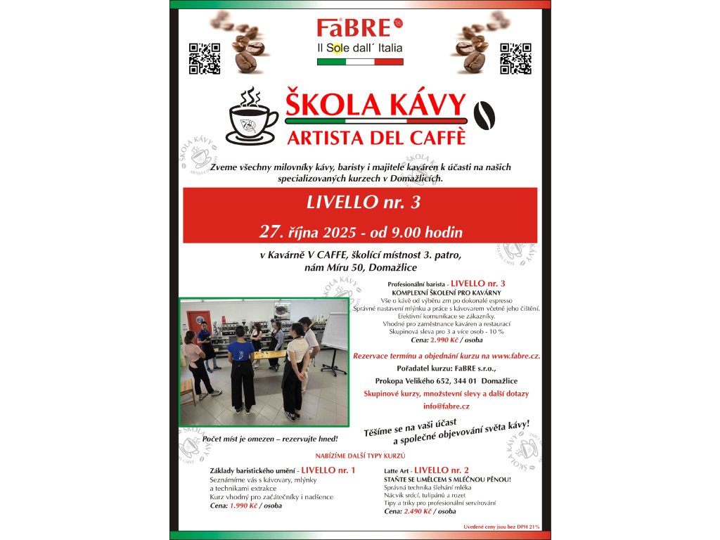 Škola kávy LIVELLO nr. 3 - 27.10.2025