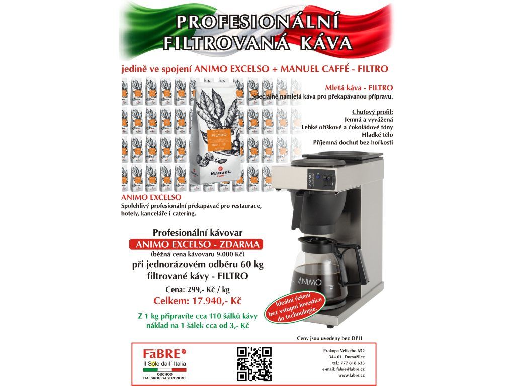 Nový profesionální kávovar ANIMO EXCELSO - ZDARMA při jednorázovém odběru 60 kg filtrované kávy - FILTRO